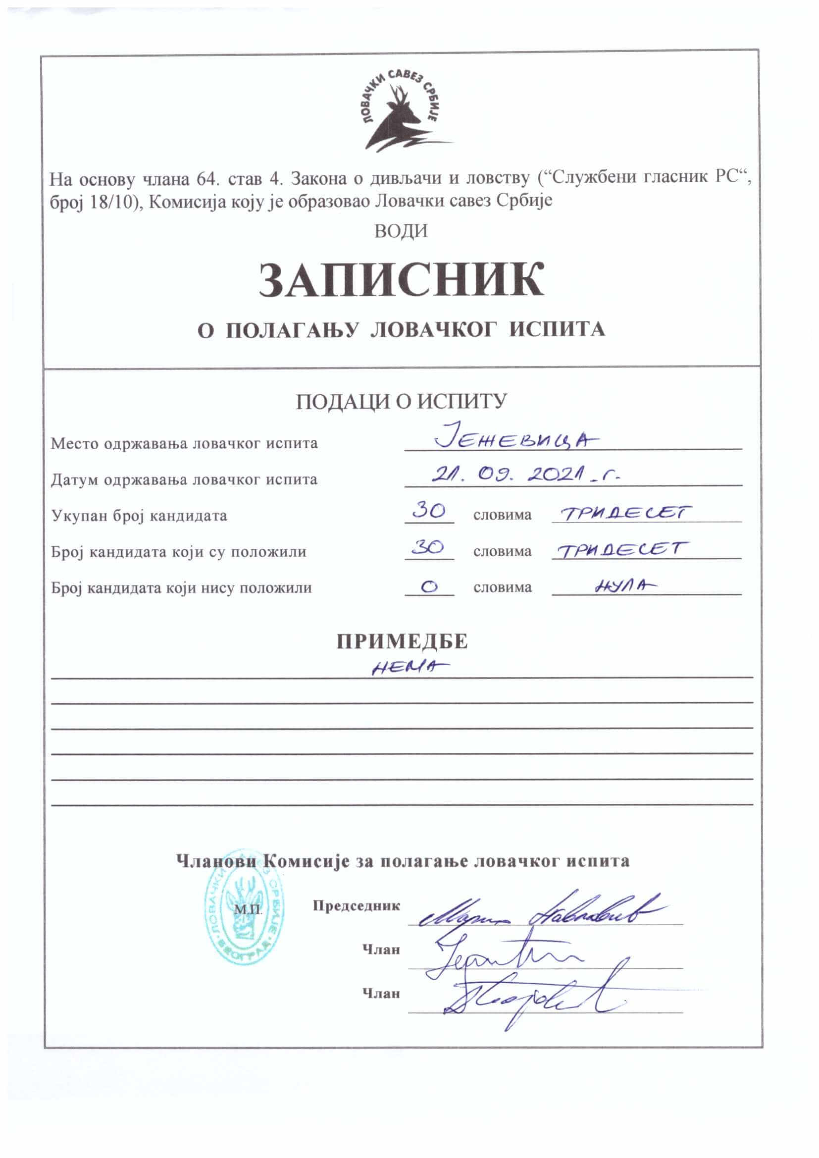28.09.2021. godine održano je polaganje lovačkog ispita u Trsteniku.