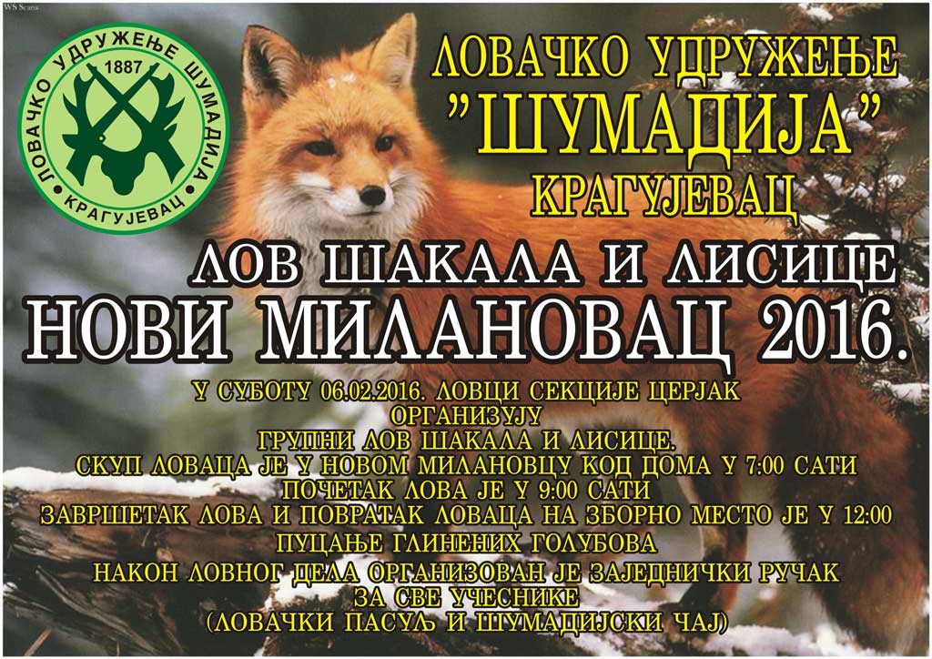 Лов шакала и лисице - Нови Милановац 2016.