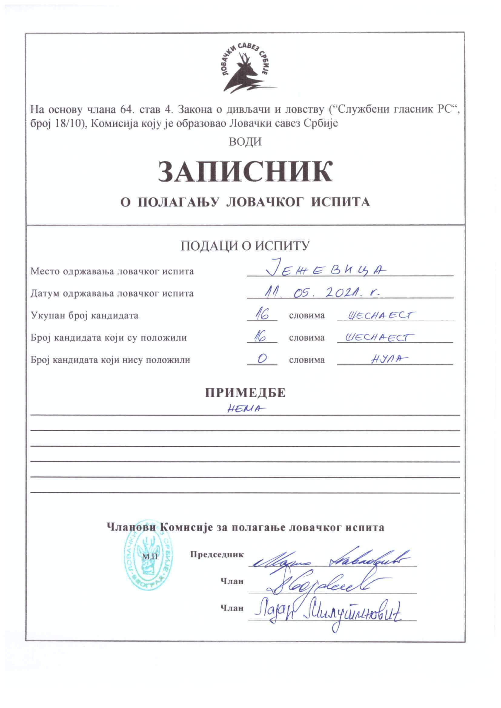 11.05.2021. godine održano je polaganje lovačkog ispita u Ježevici