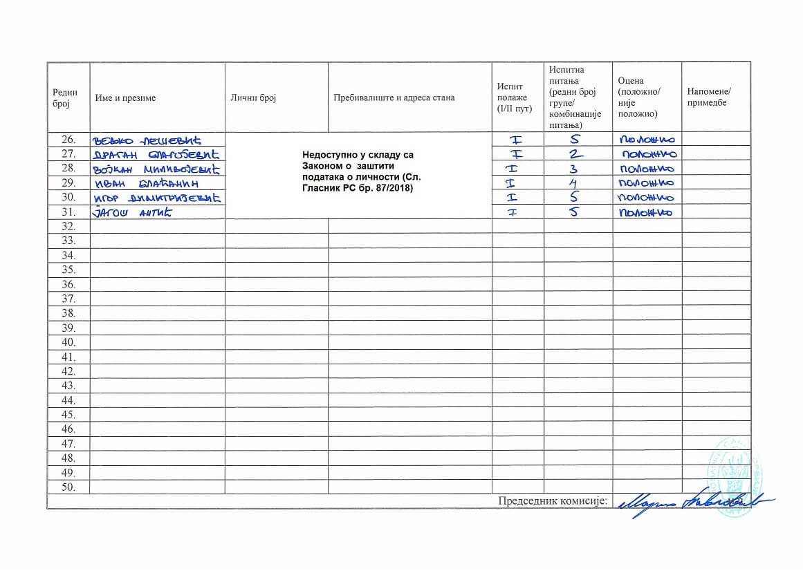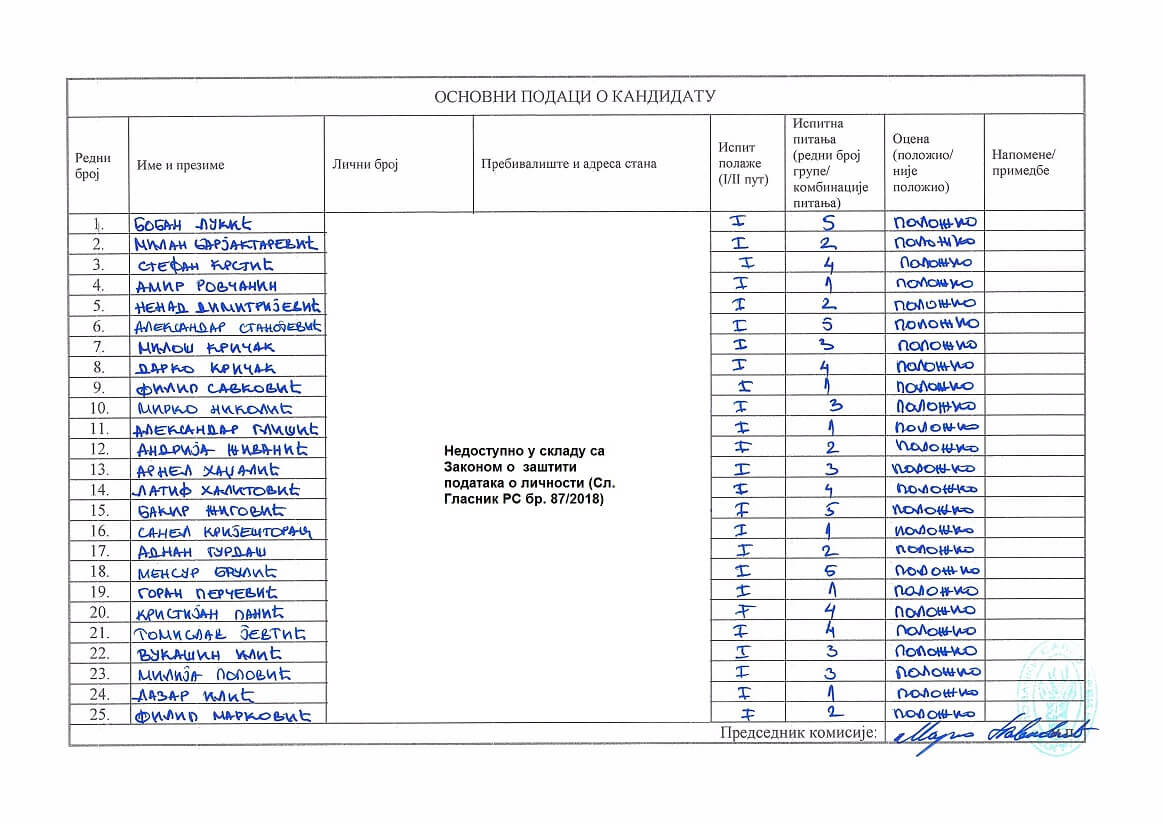 Zapisnik Kragujevac 01.08.2025. godine Spisak kandidata Kragujevac 01.08.2025. godine Spisak kandidata Kragujevac 01.08.2025. godine