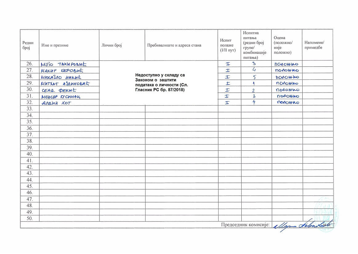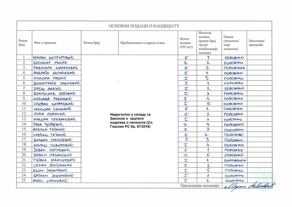 Zapisnik Ježevica 10.09.2025. godine Spisak kandidata Ježevica 10.09.2025. godine Spisak kandidata Ježevica 10.09.2025. godine