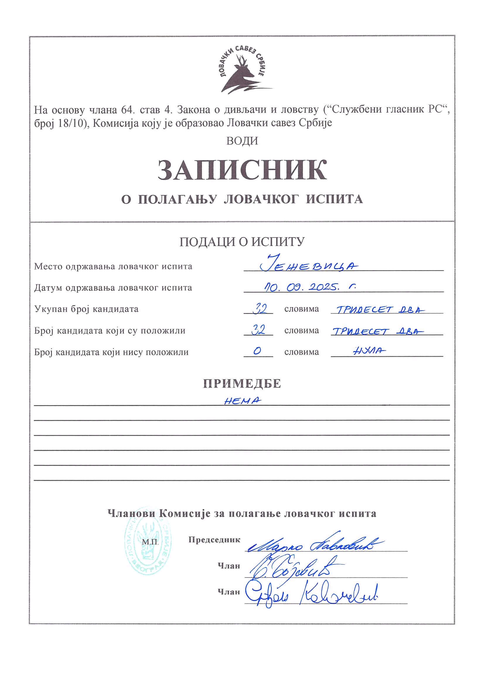 Ловачки савез Централне Србије - ЛСЦС - Новости: Održano je plaganje lovačkog ispita u Ježevici 10.09.2025. godine