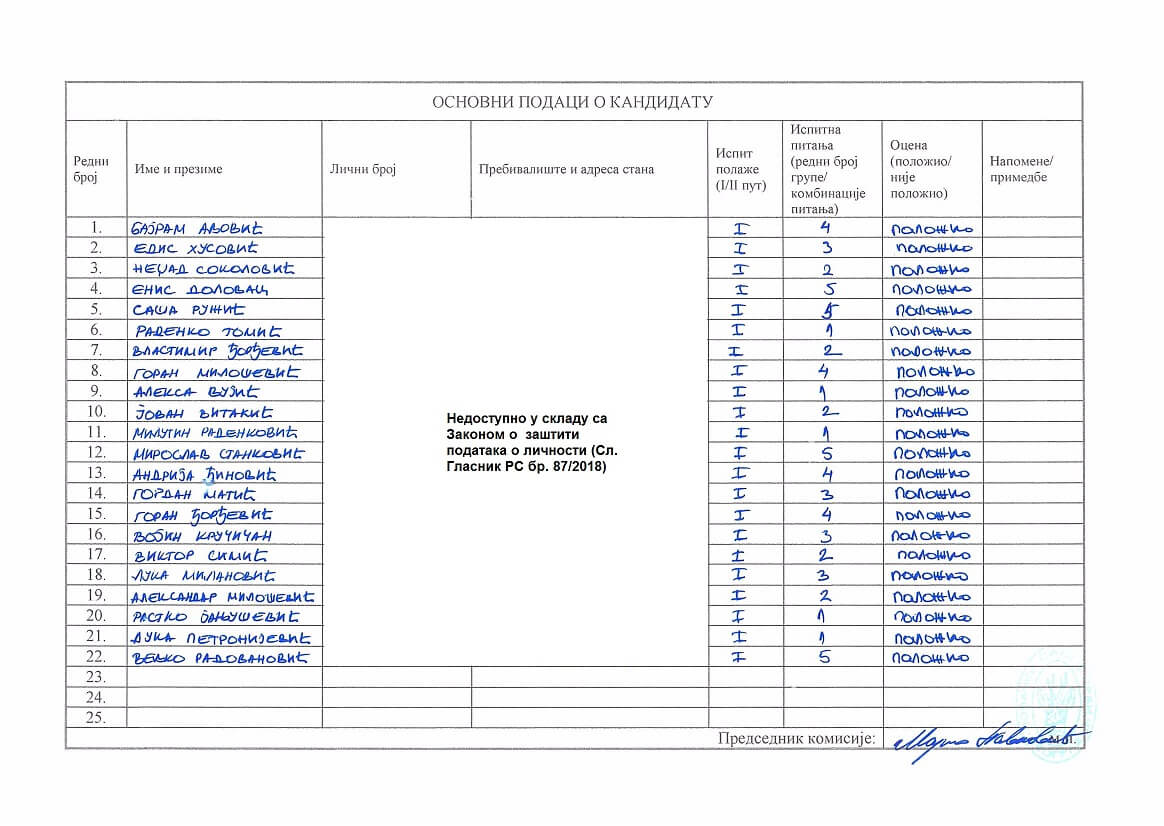Zapisnik Kragujevac 24.10.2025. godine Spisak kandidata Kragujevac 24.10.2025. godine