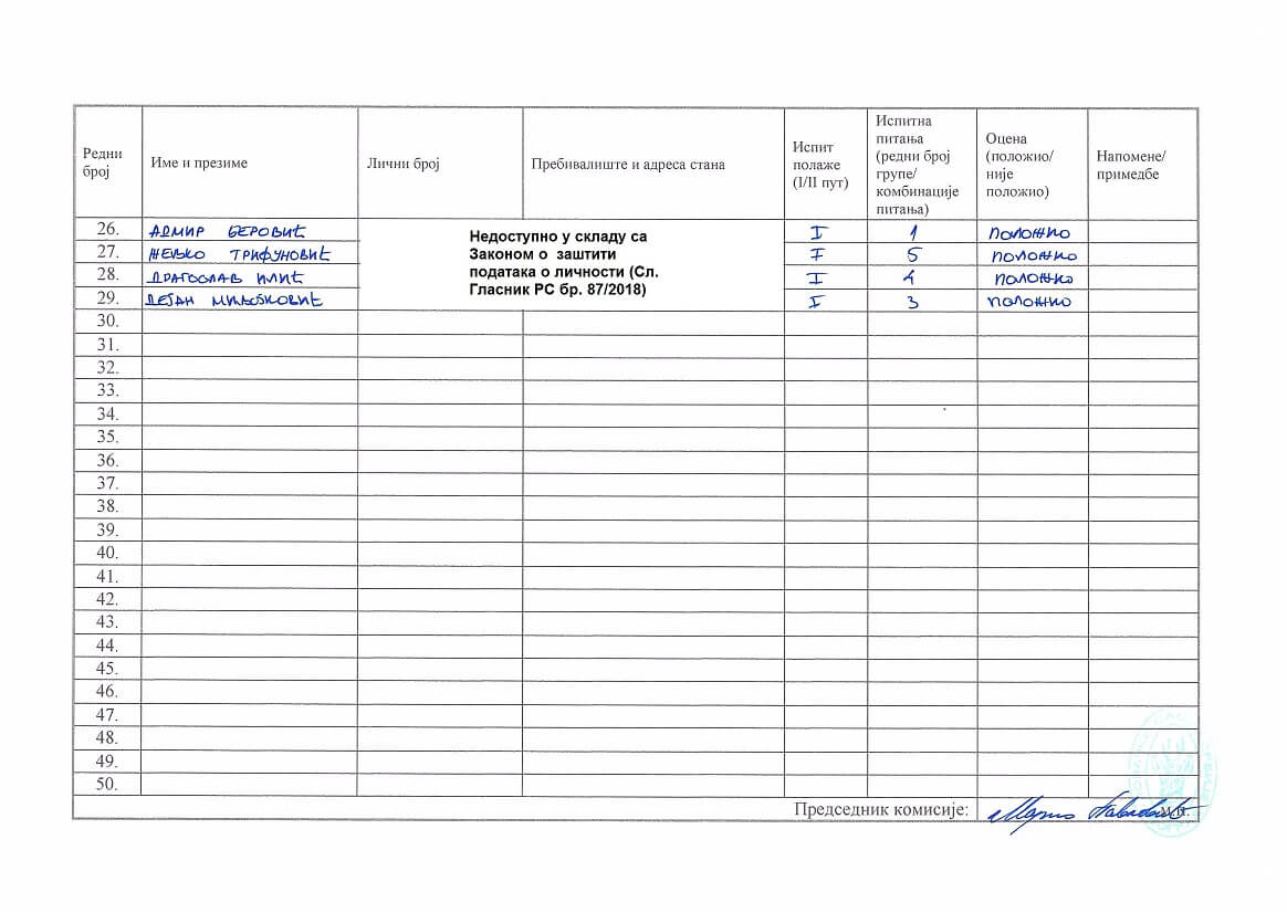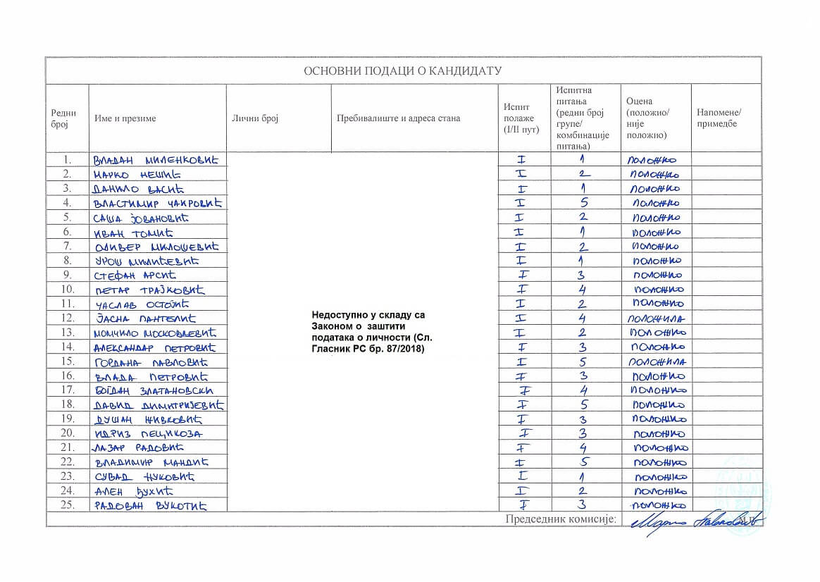 Zapisnik Kragujevac 25.12.2025. godine Spisak kandidata Kragujevac 25.12.2025. godine Spisak kandidata Kragujevac 25.12.2025. godine