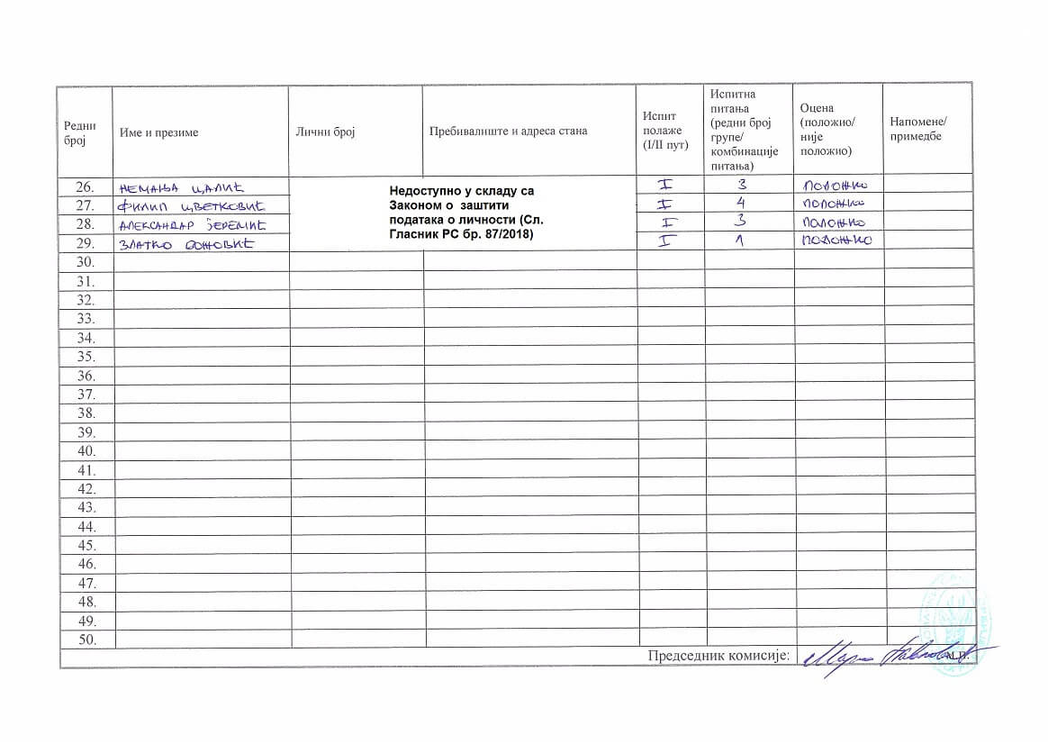 Zapisnik Ježevica 24.03.2026. godine Spisak kandidata Ježevica 24.03.2026. godine Spisak kandidata Ježevica 24.03.2026. godine